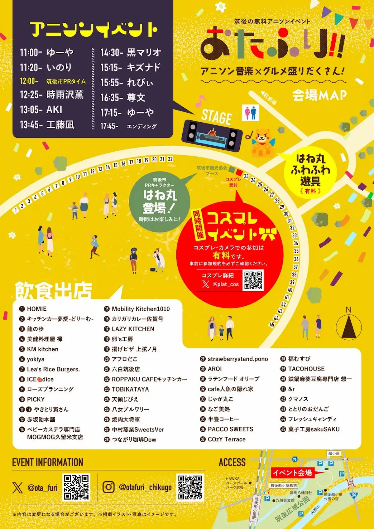 2025年10月26日(日)、福岡県筑後市にある筑後広域公園野外ステージで筑後の無料野外アニソンイベント「おたふり!!Vol.14」が開催されます。