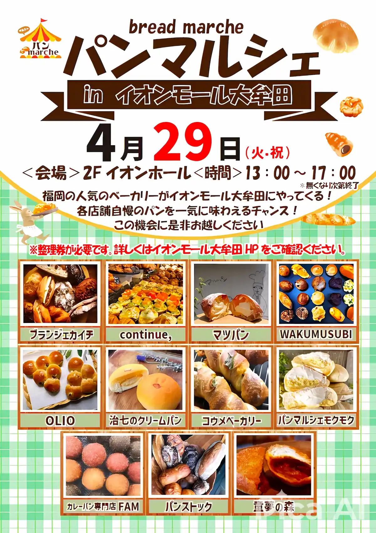 - イベント名:パンマルシェinイオンモール大牟田