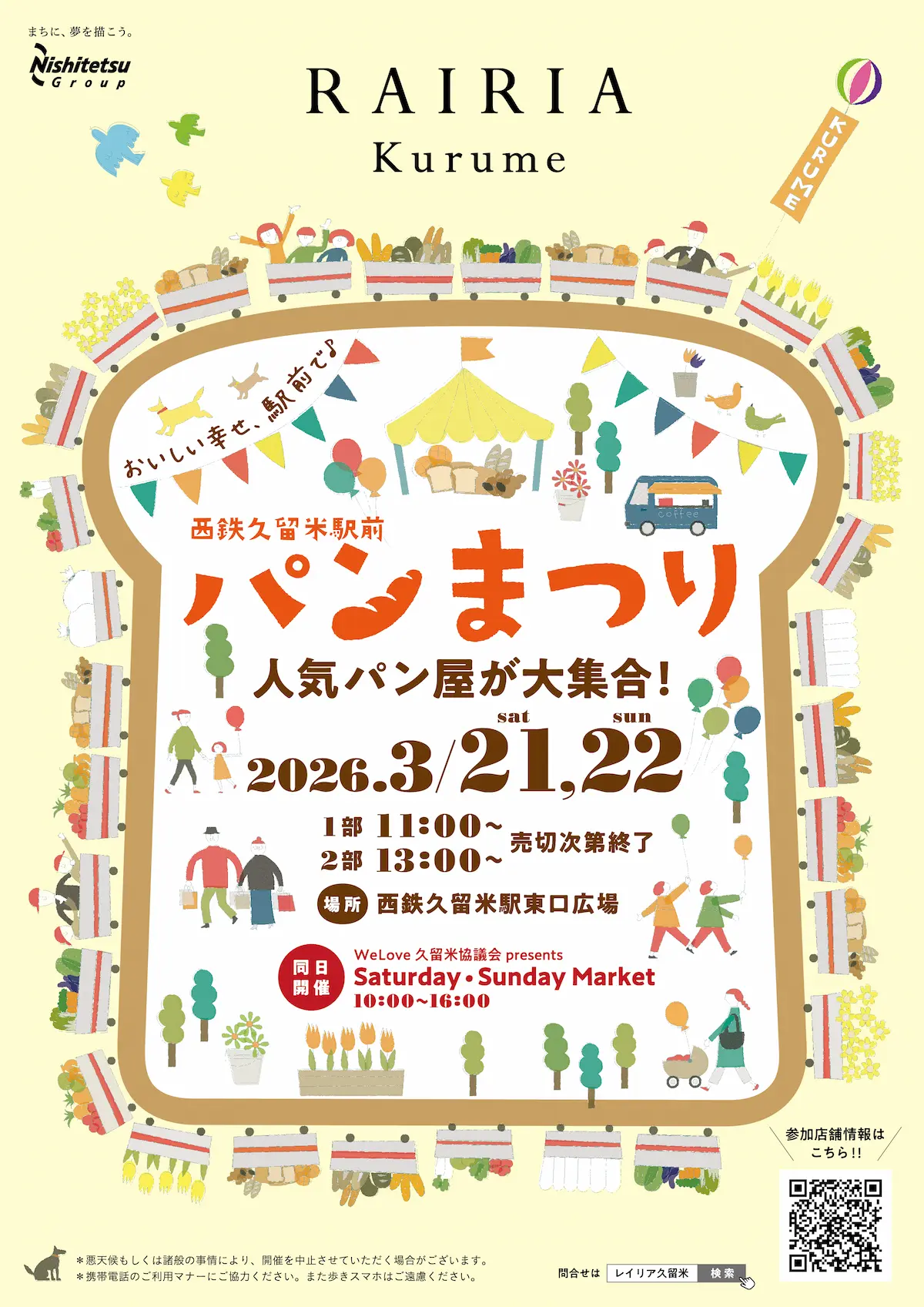 2026年3月21日(土)、22日(日)の2日間、福岡県久留米市東町の西鉄久留米駅東口広場で、レイリア久留米「パンまつり」が開催されます。